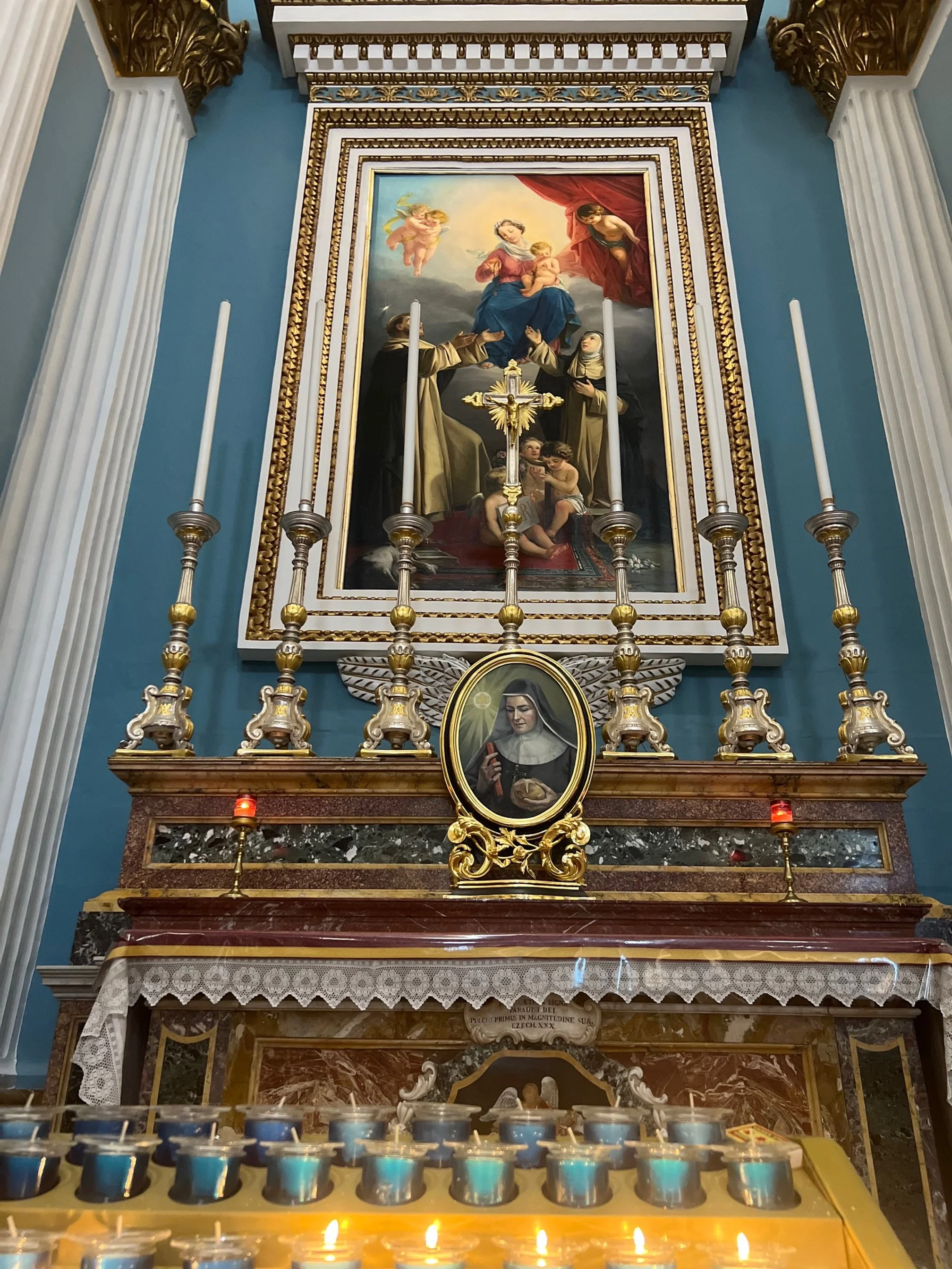 The Rotunda of Mosta is best known for its massive dome — the third largest unsupported dome in the world — and for surviving a World War II air raid when a bomb pierced the roof during mass but didn’t explode. This event is remembered as Il-Miraklu tal-Bomba (The Miracle of the Bomb).